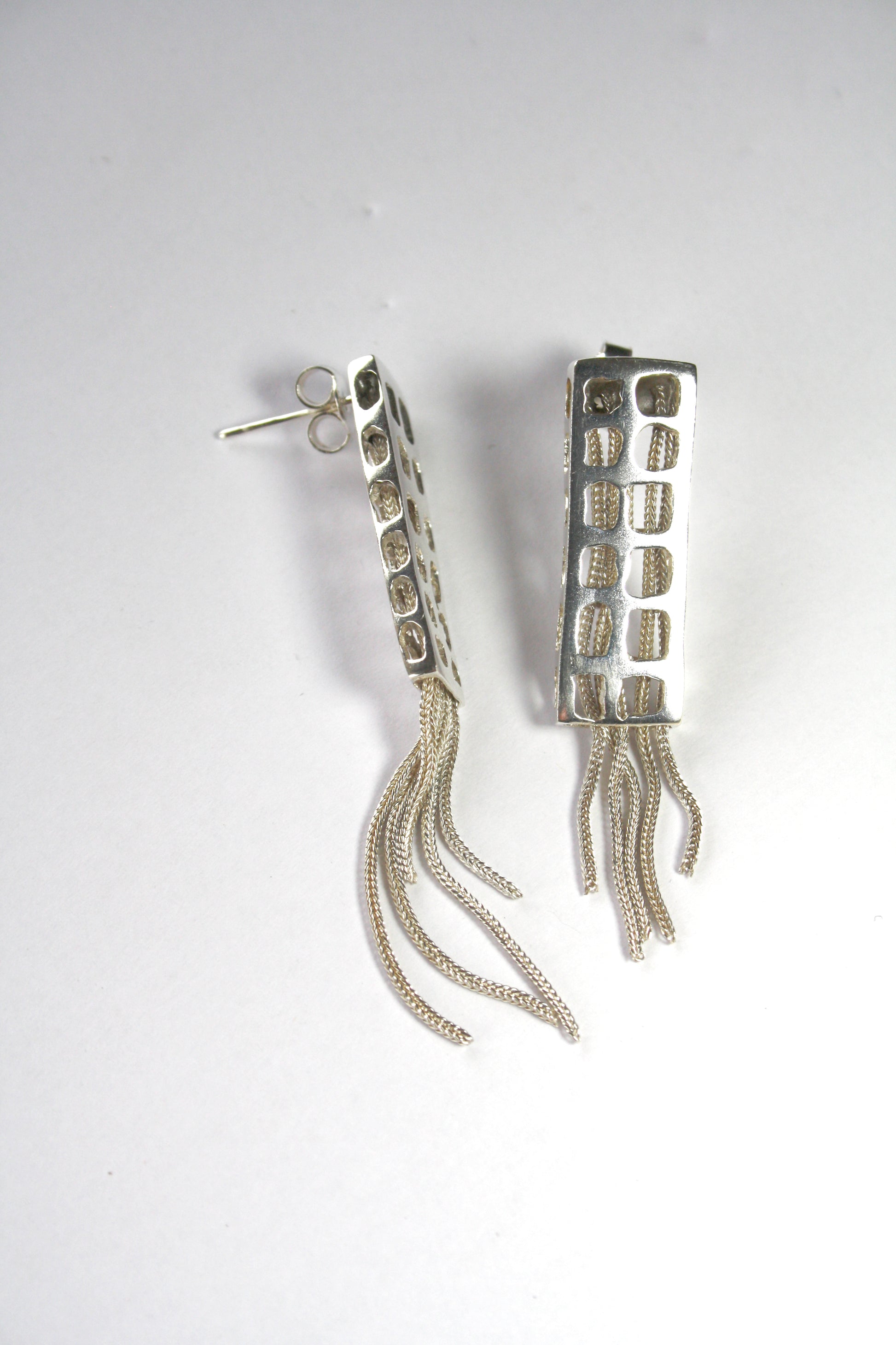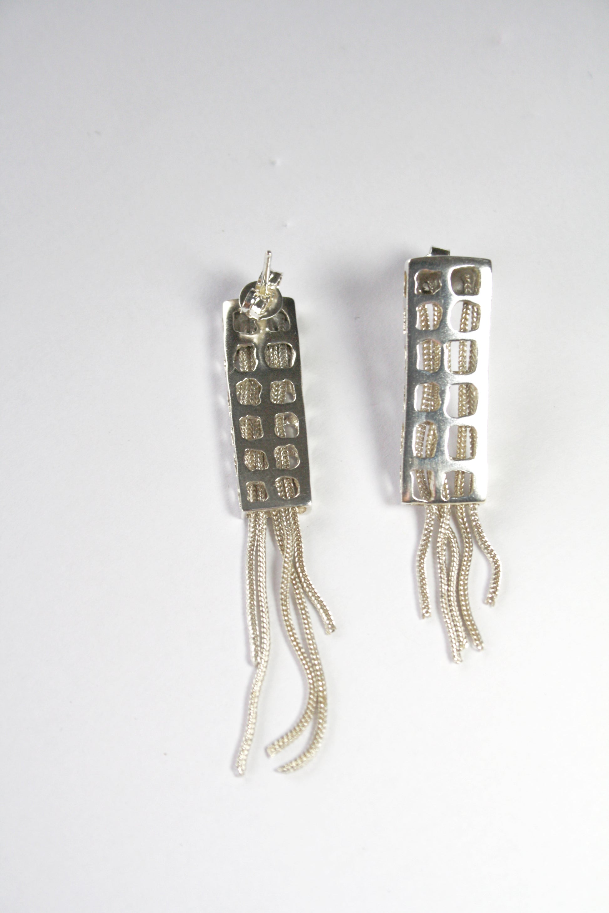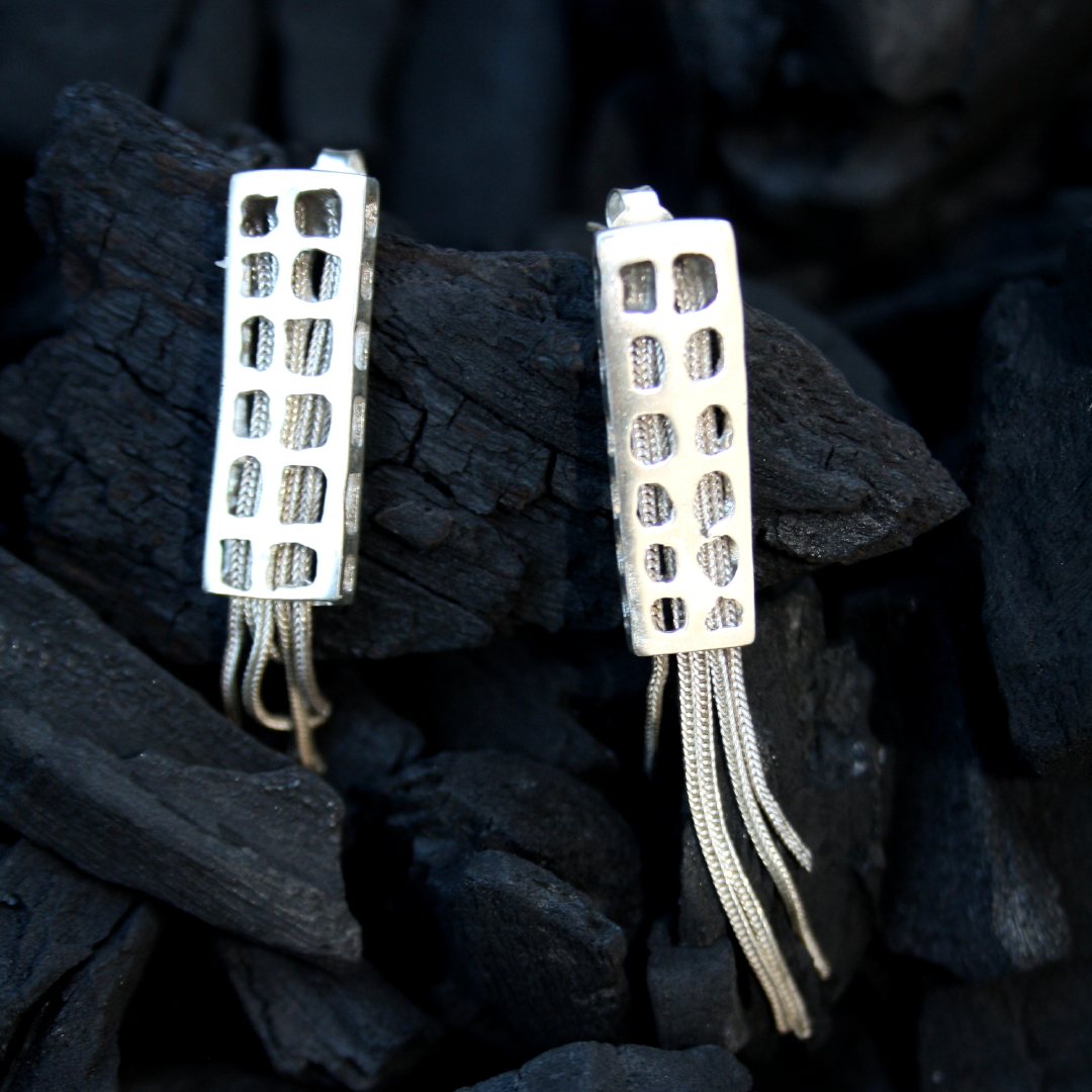 Os brincos City Building são uma homenagem à vida que pulsa dentro dos edifícios urbanos, aqueles que guardam histórias, sonhos e conexões humanas. Inspirados nas formas retangulares dos prédios que tanto me fascinam na vida real como em fotografia, as peças trazem perfurações que evocam fachadas, janelas e detalhes arquitetônicos.